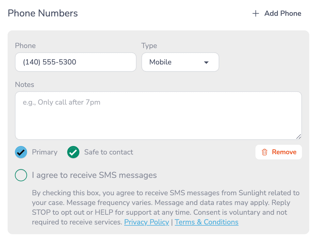 These are screenshots of how our app records SMS Opt-in for 10DLC Compliance